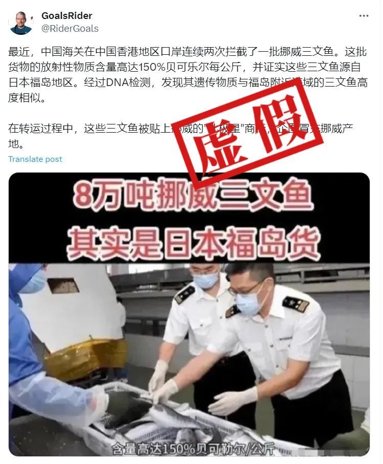 近期,中外外交平台流传一则音书,原文称,“中国海关在中国香港地区港口相连两次足下了一批挪威三文鱼。这批货色的辐射性物资含量高达150%贝可乐尔每公斤,并证据这些三文鱼源自日本福岛地区。历程DNA检测,发现其遗传物资与福岛近邻海域的三文鱼高度通常。”配图笔墨显露,“8万吨挪威三文鱼,其实是日本福岛货。”